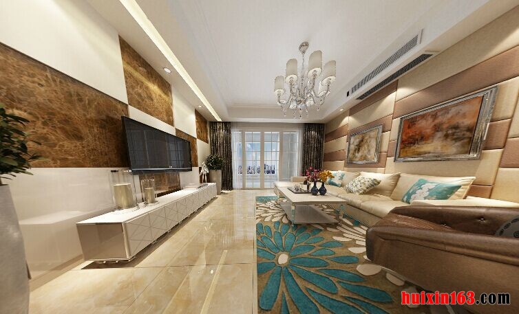 青洲大厦-138平米四居室-现代简约装修效果图-客厅