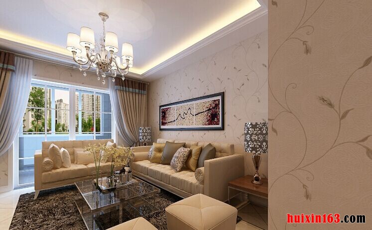 70平米的二居室,采用现代简约的装修风格,在本案例的设计当中,对于造型的设计以及色彩的搭配上,基本上都围绕着简单、清明的感觉进行装饰,例如客厅的布置,千篇一律的平顶式石膏板吊顶,搭配上一盏亮丽的水晶吊灯,让空间展现出一种明亮透彻的感觉,窗户的设计更是显得比较合乎情理,触目可及的室外景观,盎然的生机绿意,与室内起到一个相互借景的效果,通过这样的设计,间接的大大提高了空间的美观效果,洁白的地砖与吊顶上下相互呼应,暖色系的电视背景墙,也给人展现出一种浪漫温馨的氛围,在通过射灯的照射,还演绎出一种朦胧美感。