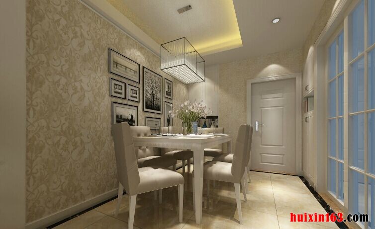 91平米的三居室,采用简欧风格的装修风格,整个空间大量的留白处理,营造出一种让人心旷神怡、称心如意的居室环境,在客厅的装饰布置当中,采用平顶式的石膏板吊顶,背景色彩以白色为主,搭配上一盏亮丽的水晶吊灯,让空间显得比较舒适、雅致,瓷砖铺设的电视背景墙,不张扬但却又展现出一种低调的奢华美感,而沙发背景墙铺贴上花纹壁纸,让居室显得比较有时尚感,一幅壁画的悬挂,也让居室展现出一种不一样的趣味,餐厅的设计也比较浪漫、唯美,个性的水晶吊灯,让空间的美提升了一大档次,餐桌椅基本都是以白色为主色调,搭配上一束花卉的添加,让色彩显得比较形象突出。