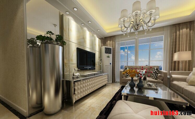 中央公馆-91平米三居室-现代简约装修效果图-客厅