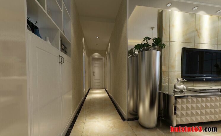 中央公馆-91平米三居室-现代简约装修效果图-玄关
